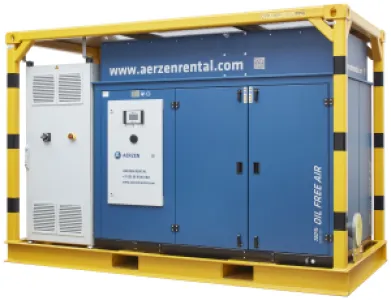 AERZEN plug-and-play ISO container solutions deliver energy-efficient compressed air supply with maximum flexibility. The compact turnkey system enables fast installation, easy integration, and reliable operation without requiring additional machine room infrastructure.